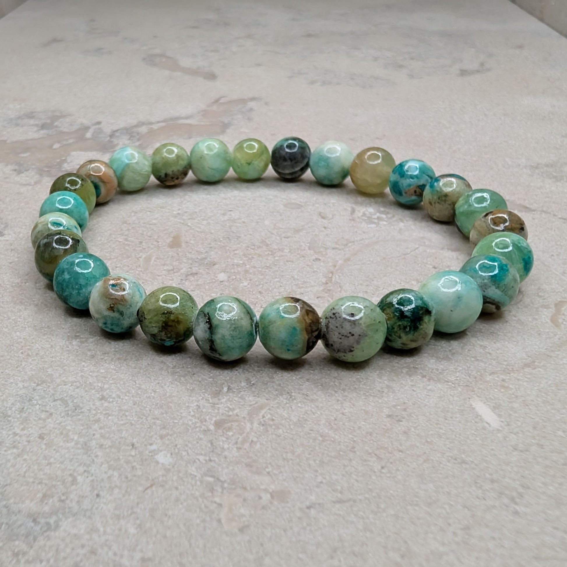 Hitta modet att tala och leva din sanning. Detta vackra armband med skimrande Amazonit i blågröna nyanser är en kraftfull påminnelse om att kommunicera från hjärtat – med klarhet, mod och medkänsla. Dess milda energi lugnar sinnet och ger dig styrkan att uttrycka dig ärligt.