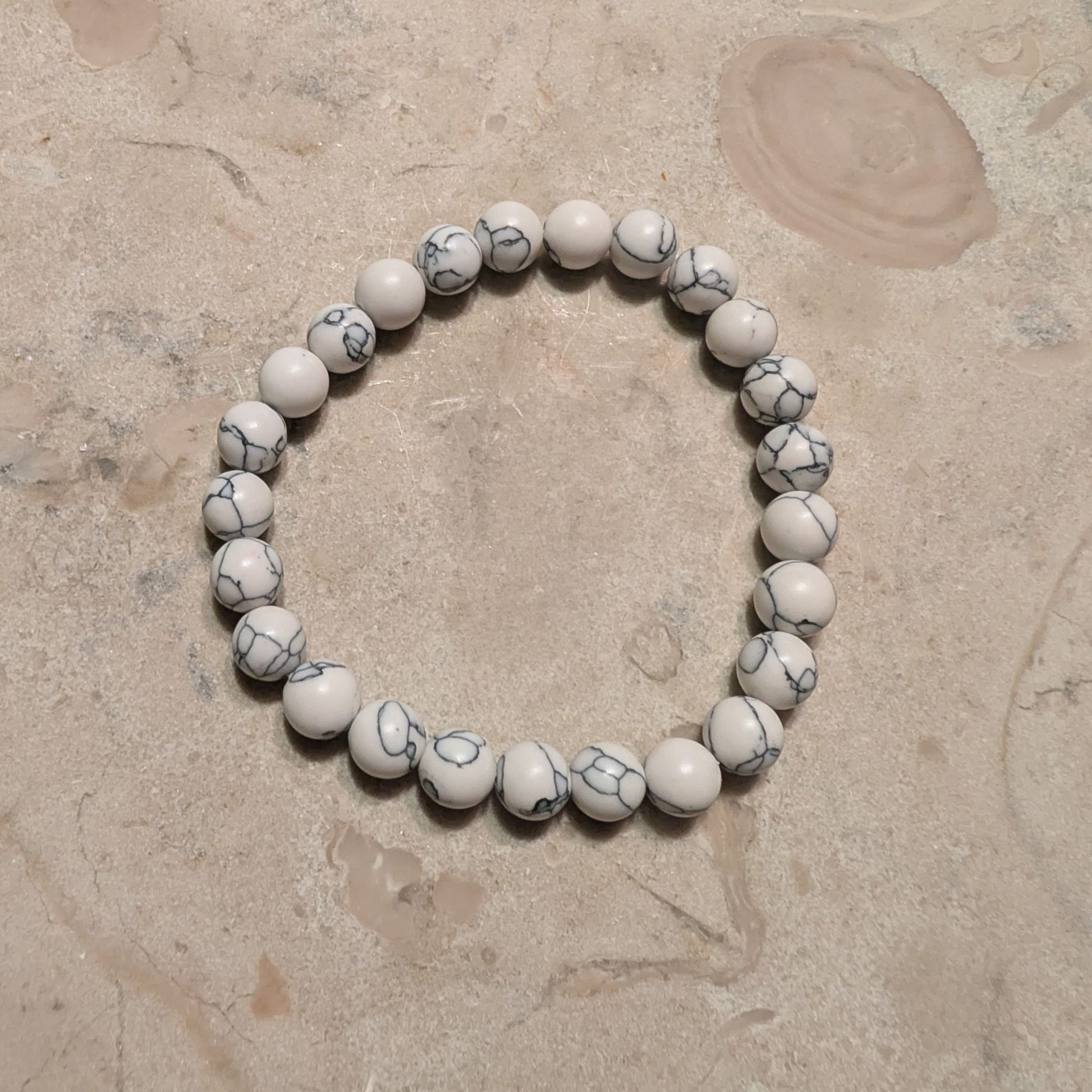 Material: Naturlig stenpärla vit Howlit, slitstark elastisk tråd.